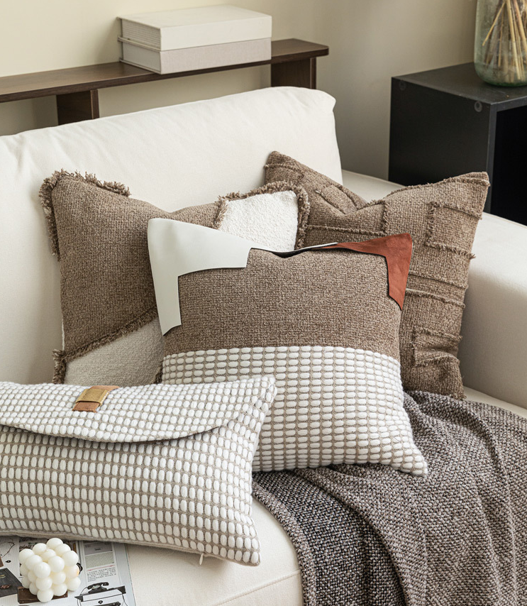 P-หมอนอิง สีขาวน้ำตาล 45*45