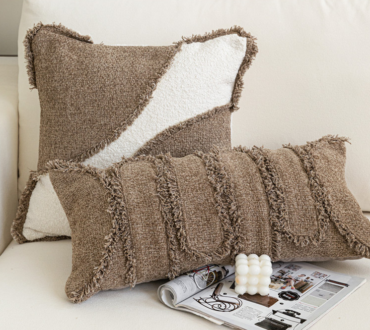 P-หมอนอิง สีขาวน้ำตาล 45*45